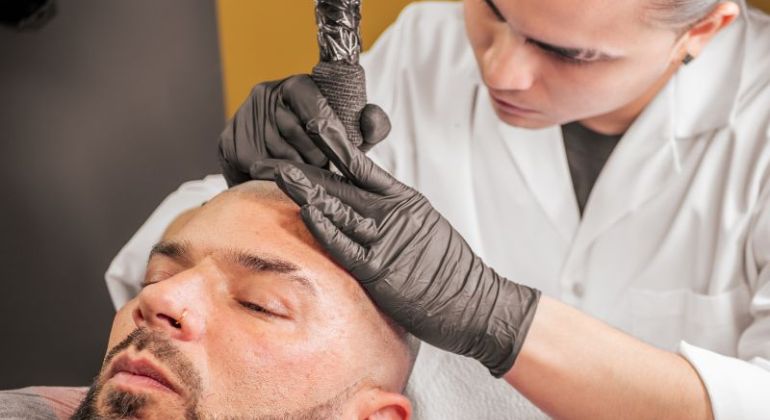 Scalp micropigmentation is a non-surgical solution that creates the illusion of a shaved head.